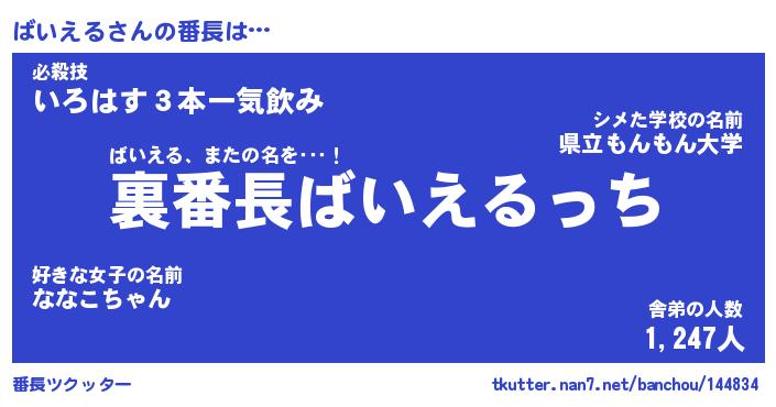 | 意味不明あだ名 | 『ペロリンばいえる』『永久保存ばいえる』 |
