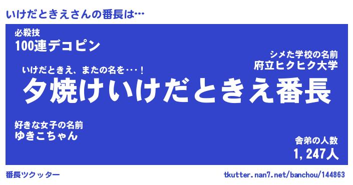 | ヒーロー風カッコイイあだ名 | 『スーパーイケダトキエ』『銀牙騎士イケ』 |