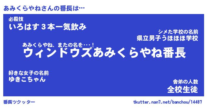 | ヘコむあだ名 | 『あみふぇ~』『なまこ酢』 |