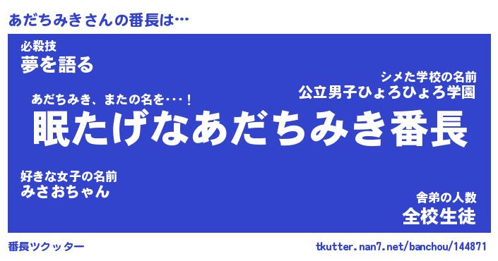| ファンタジー風あだ名 | 『アダフェル』『エターナルアダチミキー』 |