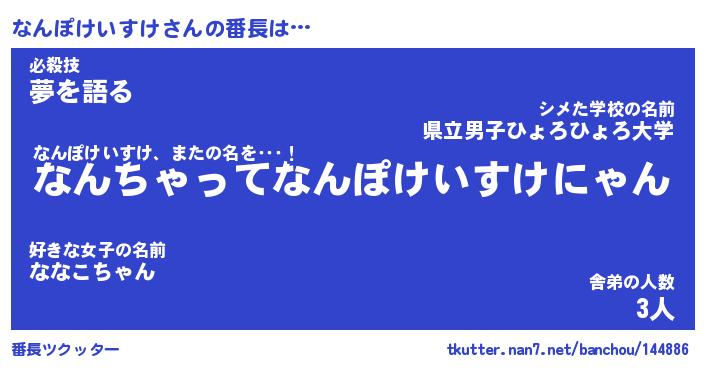 | 伝説のあだ名 | 『伝説のスナイパーなんぽけいすけ』 |