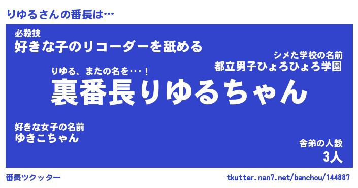 | ヘコむあだ名 | 『りゆもー』『酢こんぶ』『りゆを』 |