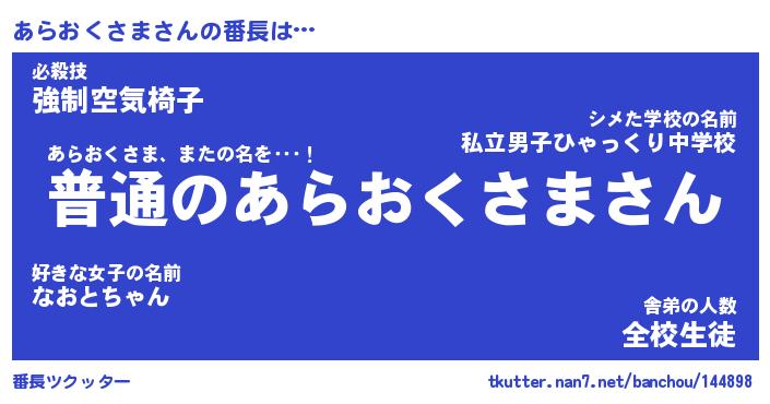 | 伝説のあだ名 | 『不死鳥のスナイパーあらおくさま』 |