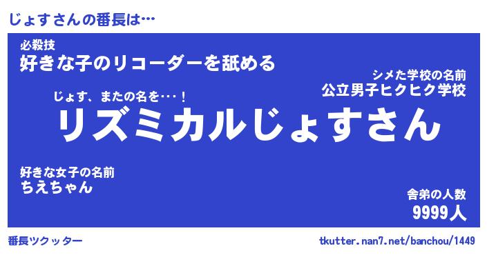 | 2回繰り返すあだ名 | 『じょじょ』『じじょょ』『ぬぷぬぷ』 |