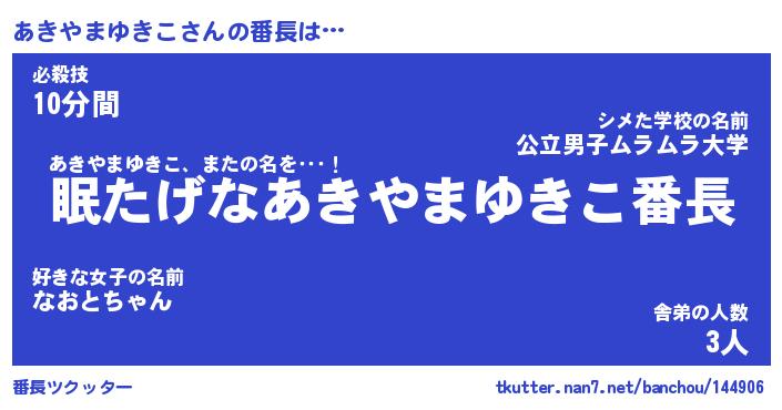 | 肩書あだ名 | 『あきやまゆきこ社長令嬢』 |