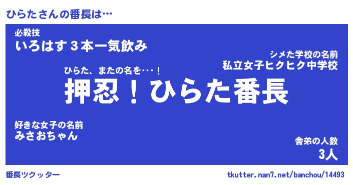 | ヒーロー風カッコイイあだ名 | 『スーパーヒラタ』『ウルトラひらたマン』 |