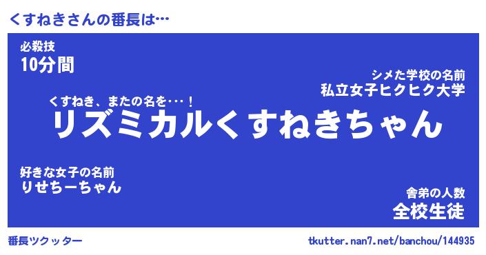 | 男性向けラノベタイトル風あだ名 | 『くすねきの憂鬱』 |