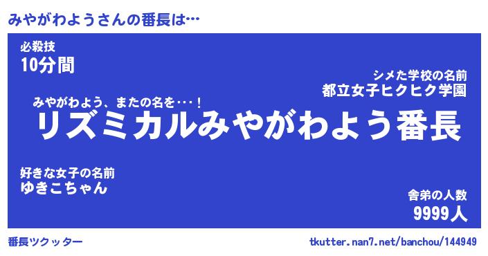| 肩書あだ名 | 『みやがわよう御曹司』 |
