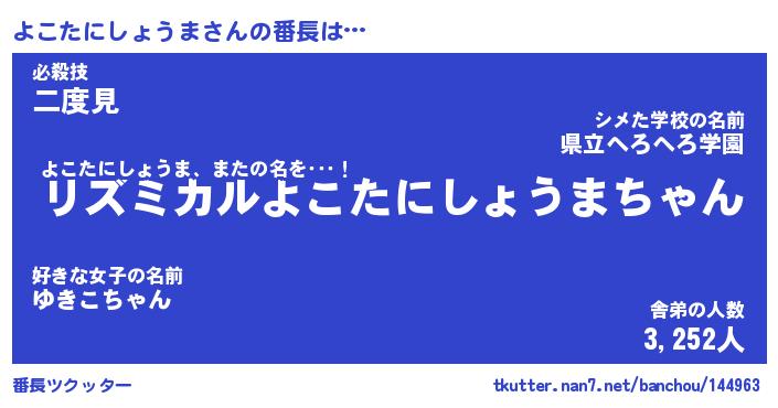 | 伝説のあだ名 | 『伝説のスナイパーよこたにしょうま』 |