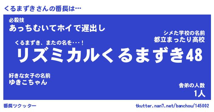 | ファンタジー風あだ名 | 『クルフェル』『エターナルクルマズキー』 |