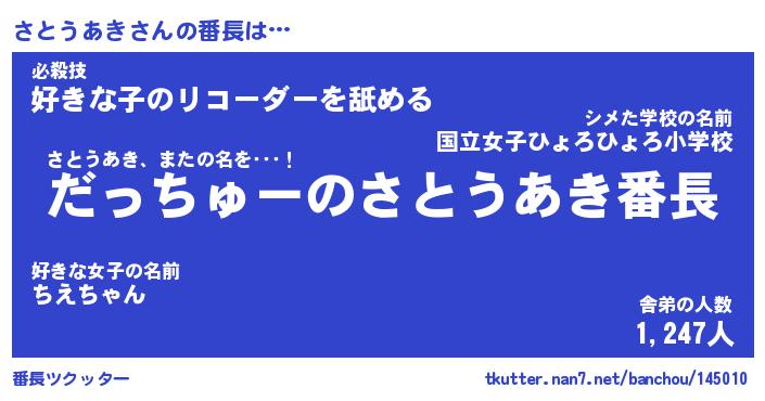 | 肩書あだ名 | 『さとうあき店長』『さとうあき総理大臣』 |
