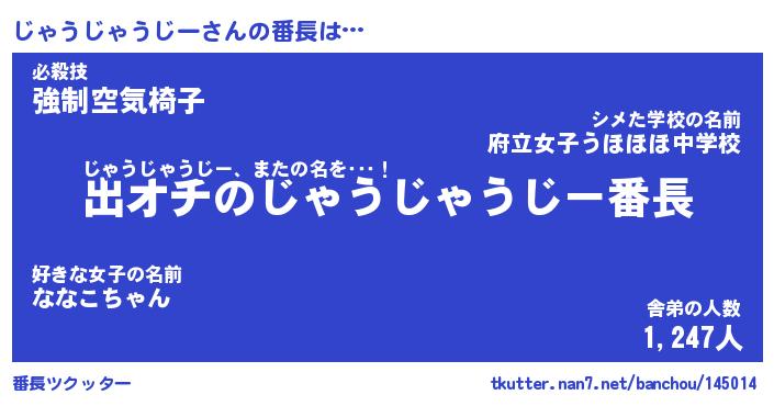 | 男性向けラノベタイトル風あだ名 | 『じゃうじゃうじーの憂鬱』 |
