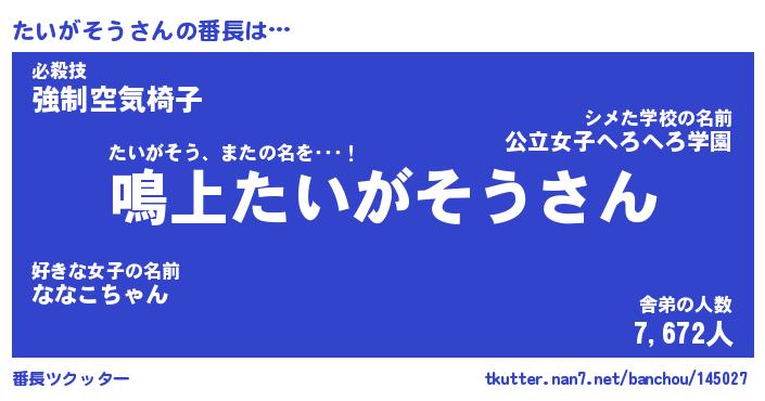 | 2回繰り返すあだ名 | 『たいたい』『たたいい』『ぬれぬれ』 |
