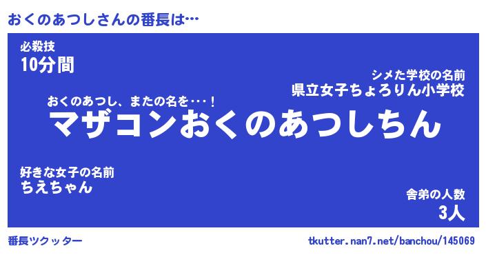 | 伝説のあだ名 | 『封印されしスナイパーおくのあつし』 |