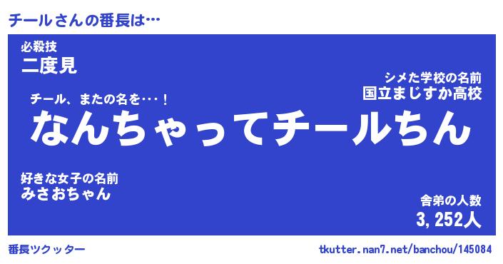 | ファンタジー風あだ名 | 『チーフェル』『エターナルチールー』 |