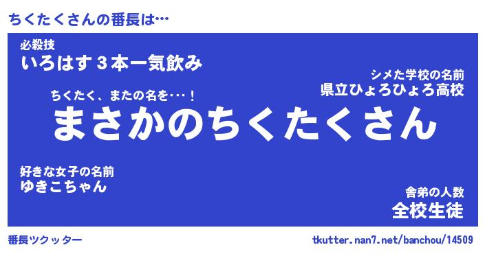 | ヒーロー風カッコイイあだ名 | 『スーパーチクタク』『暗黒騎士チク』 |