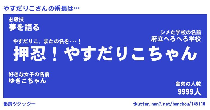 | ヒーロー風カッコイイあだ名 | 『スーパーヤスダリコ』『天弓騎士ヤス』 |