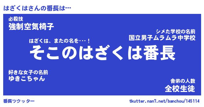 | 肩書あだ名 | 『はざくは社長』『はざくは大統領』 |