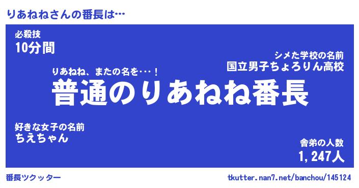 | 意味不明あだ名 | 『ペロリンりあねね』『永久保存りあねね』 |