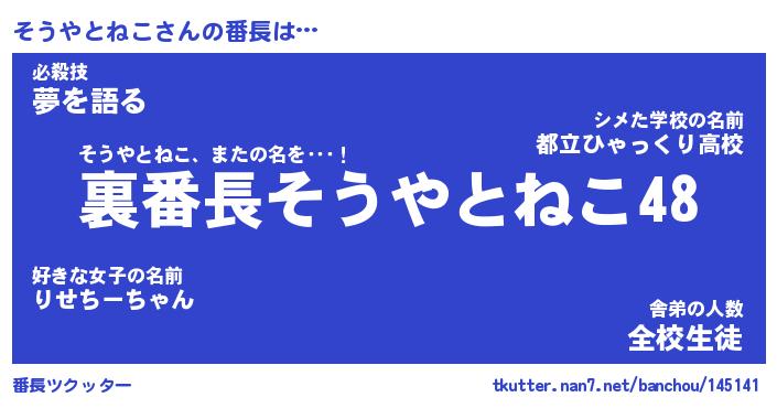 | 伝説のあだ名 | 『不死鳥のスナイパーそうやとねこ』 |