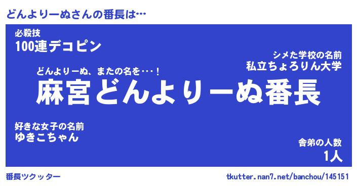 | 伝説のあだ名 | 『不死鳥のスナイパーどんよりーぬ』 |