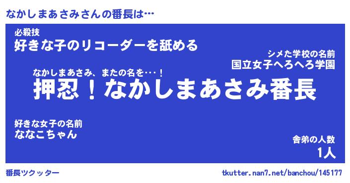| 男性向けラノベタイトル風あだ名 | 『ナカシマアサミアートオンライン』 |