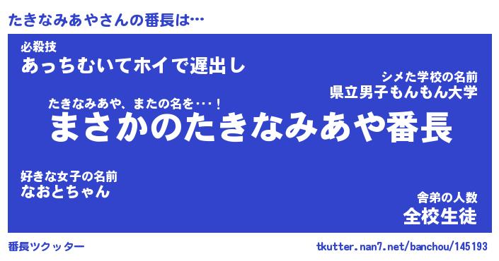 | 肩書あだ名 | 『たきなみあや社長』『たきなみあや団長』 |