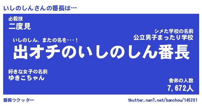 | 2回繰り返すあだ名 | 『いしいし』『いいしし』『ぬらぬら』 |