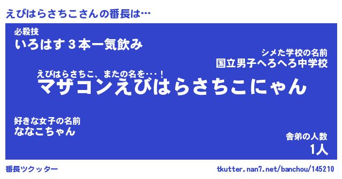 | 伝説のあだ名 | 『封印されしスナイパーえびはらさちこ』 |