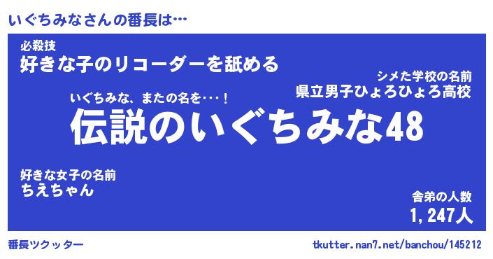 | 伝説のあだ名 | 『伝説の竜騎士いぐちみな』 |