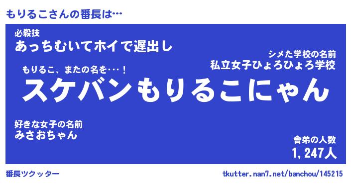 | ヒーロー風カッコイイあだ名 | 『スーパーモリルコ』『銀牙騎士モリ』 |