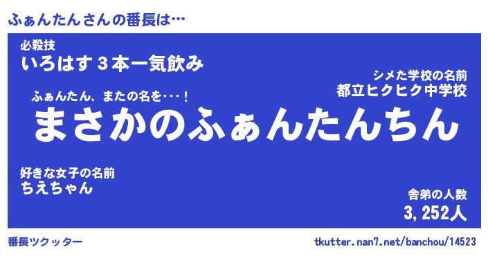 | 肩書あだ名 | 『ふぁんたん店長』『ふぁんたん総理大臣』 |