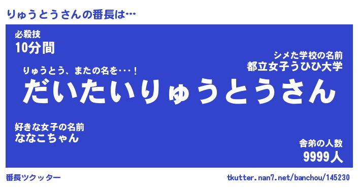 | ヒーロー風カッコイイあだ名 | 『スーパーリュウトウ』『天弓騎士リュ』 |