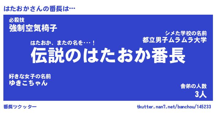 | 伝説のあだ名 | 『伝説の竜騎士はたおか』 |
