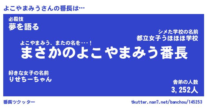 | 肩書あだ名 | 『よこやまみう御曹司』 |