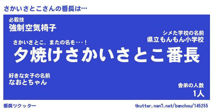 | 伝説のあだ名 | 『封印されし竜騎士さかいさとこ』 |
