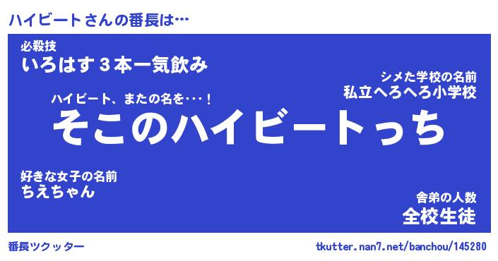 | ポケモン風あだ名 | 『ハイチュウ』『ハイビダネ』 |
