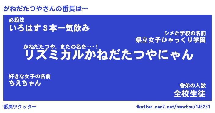 | ヘコむあだ名 | 『かねにー』『なまこ酢』『かねっぺ』 |