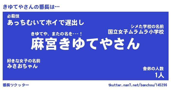 | 意味不明あだ名 | 『ペロリンきゆてや』『永久保存きゆてや』 |