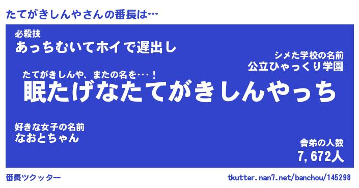 | ヘコむあだ名 | 『たてにー』『なまこ酢』『たてっ子』 |