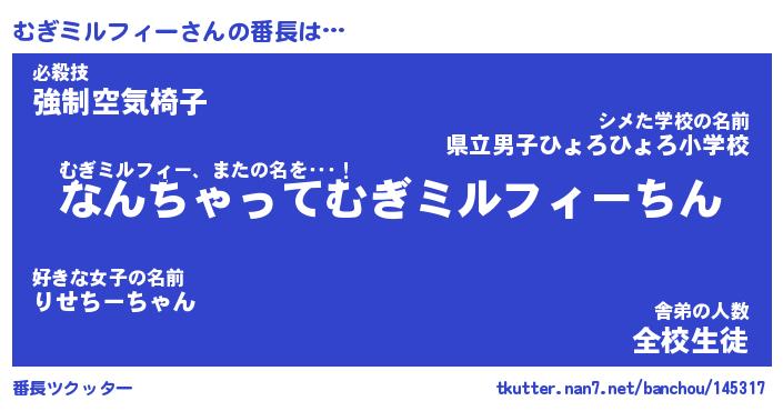 | 伝説のあだ名 | 『伝説のスナイパーむぎミルフィー』 |
