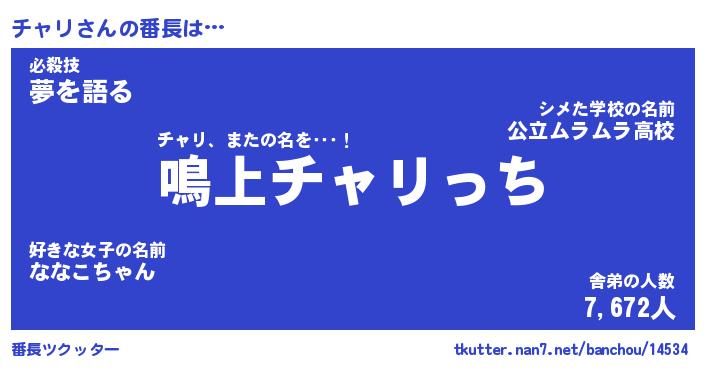 | ポケモン風あだ名 | 『チャチュウ』『チャリダネ』 |