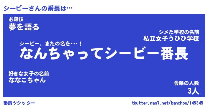 | ヒーロー風カッコイイあだ名 | 『スーパーシービー』『魔戒騎士シー』 |