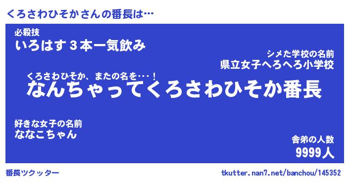 | 伝説のあだ名 | 『伝説のスナイパーくろさわひそか』 |