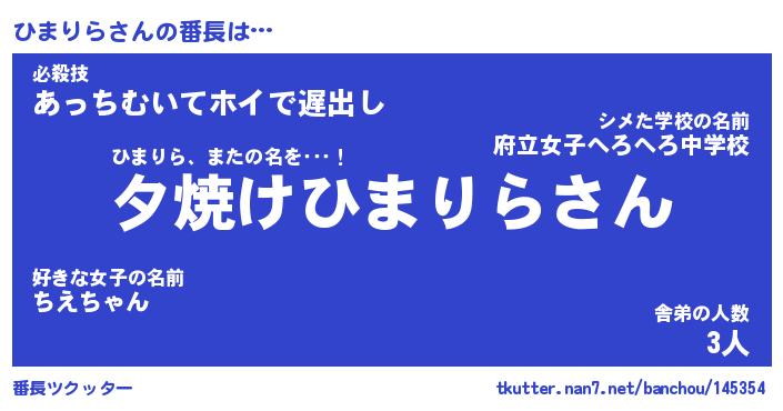 | 伝説のあだ名 | 『封印されしスナイパーひまりら』 |