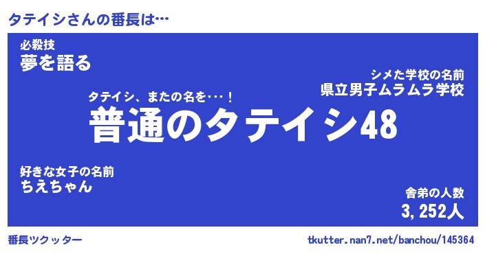 | ファンタジー風あだ名 | 『タテフェル』『エターナルタテイシー』 |