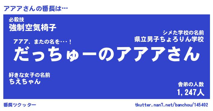 | 肩書あだ名 | 『アアア社長』『アアア国家主席』 |