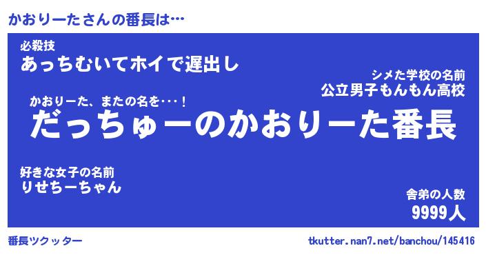 | ピコ太郎風あだ名 | 『カコ一郎』『ピカ史郎』『カオ六郎』 |