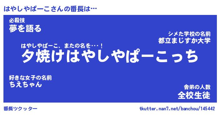 | ヒーロー風カッコイイあだ名 | 『スーパーハヤシヤパーコ』 |