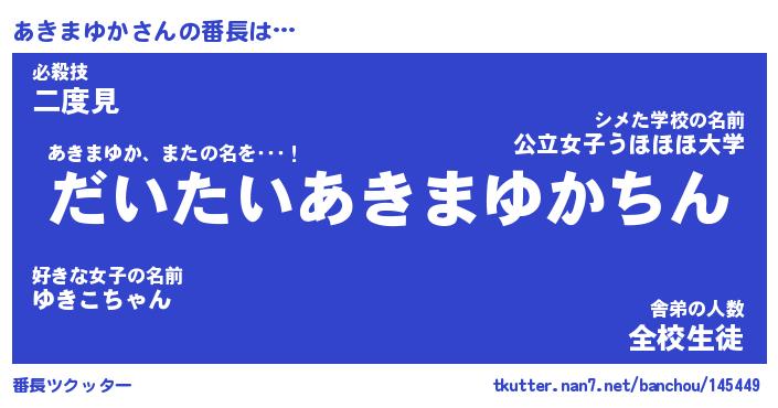 | 肩書あだ名 | 『あきまゆか店長』『あきまゆか国家主席』 |